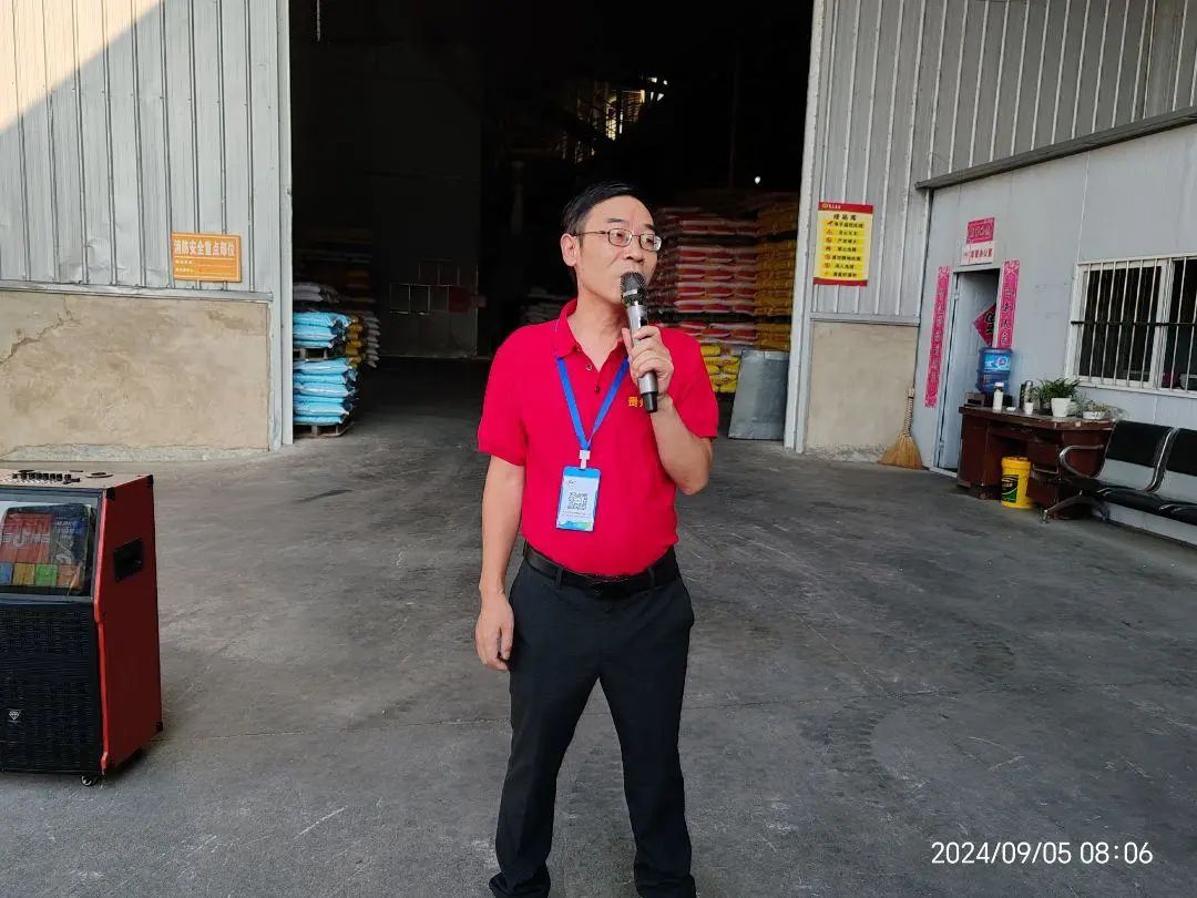 在5日的全员晨会上,公司领导田强、陈礼智分别讲话。他们从各自角度客观分析当前的形势,号召全体员工要把贵州友美的销售增量、贵州普牧全面动工兴建摆在首要位置,不等不靠、主动作为,分秒必争、一刻不停,学会一切工作朝前赶,全力以赴往前推,努力完成三季度”龙鸣狮吼“战役完胜,以创造优异成绩献礼新中国成立75周年与贵州友美投产4周年。