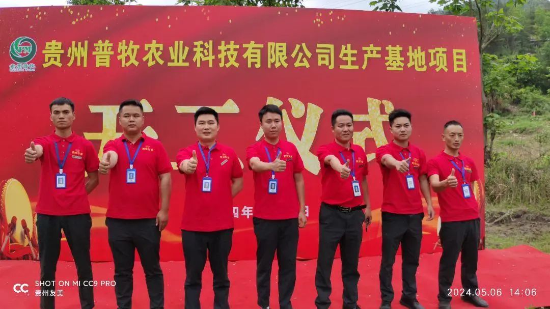 5月6日,立夏刚过,暖风微熏,草木温润。友美集团董事长尹志元、技术总监黄安兵;贵州友美田强、陈礼智、张青全、股东雷雨先生及闻讯而来的供应商王建锋等代表;各部门负责人与全体营销战将共同见证贵州普牧农业科技有限公司生产基地项目破土动工这一高光时刻。